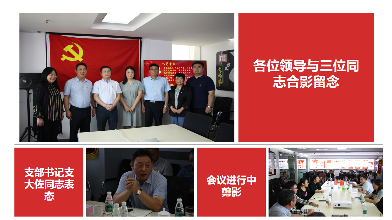 會議首先由閆洪珍、胡穎、支流三位同志從對黨的認(rèn)識、入黨動機、現(xiàn)實表現(xiàn)等方面向支部大會進(jìn)行匯報,支部其他黨員對三位同志的整體情況進(jìn)行了討論并表決通過。支部書記支大佐同志宣布閆洪珍、支流、胡穎光榮成為中國共產(chǎn)黨預(yù)備黨員,并為其佩戴黨徽。
